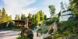 Ermitage Saint-Antoine de Lac-Bouchette (Lac-Saint-Jean) : Ce sanctuaire unique et moderne est adapté à la réalité d’aujourd’hui. Il se distingue par son caractère naturel, sa tranquillité et la beauté de son environnement. L’établissement propose une salle de réunion avec vue sur l’eau, des chambres d’hôtel rénovées, des chalets et des emplacements de camping sur le même site.